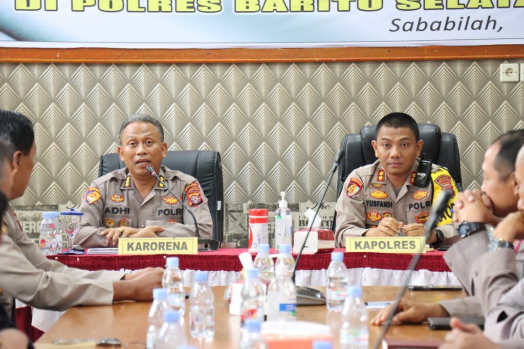 Bertempat di Aula Pucuk Rebung Mapolres Barsel, kunjungan tim supervisi yang dipimpin langsung Karorena Kombes Pol. Adhy Fandy Ariyanto, S.H., S.I.K. disambut oleh Kapolres AKBP Yusfandi Usman, S.I.K., M.I.K., serta diikuti oleh para pejabat utama, Kapolsek beserta pembantu bensat jajaran.