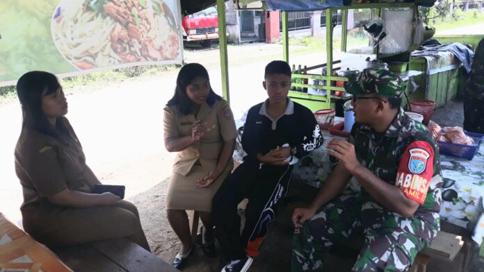 Babinsa Koramil 1016–07/Tewah Kodim 1016/Palangka Raya, Koptu Agung Setiawan, melaksanakan Komunikasi Sosial (Komsos) dengan para Guru dan Siswa SMA Negeri 1 Kecamatan Tewah, Kabupaten Gunung Mas,