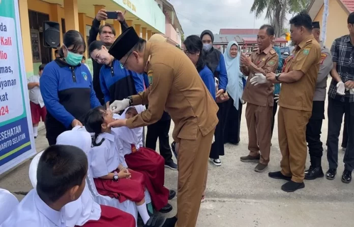 BUNTOK – Penjabat (Pj) Bupati Barito Selatan, H. Deddy Winarwan, diwakili Sekretaris Daerah Kabupaten Barito Selatan, Edy Purwanto, menghadiri pencanangan Pekan Imunisasi Nasional (PIN) polio serentak se-Kabupaten Barito Selatan Tahun 2024. Acara berlangsung di SDN Buntok 3 pada Selasa (23/7/2024).