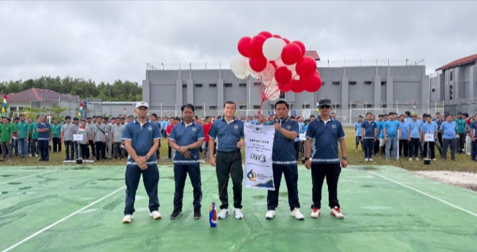 PALANGKA RAYA – Lembaga Pemasyarakatan (Lapas) Kelas IIA Palangka Raya membuka Pekan Olahraga dalam rangka memperingati Hari Bakti Pemasyarakatan (HBP) ke-62, Rabu (15/4). Kegiatan yang digelar di halaman dalam lapas tersebut diikuti seluruh pegawai dan warga binaan dengan suasana meriah.